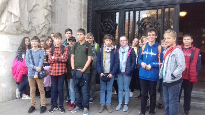 Reggel a KÖKI-nél gyülekeztünk. Azután metróval mentünk a Vígszínházhoz. A művészbejárón mentünk be. A színházat a forgószínpad aljától a zsinórpadlásig bejártuk, ami roppant érdekes volt. Felmentünk a házi színpadhoz, ahol sok érdekeset láttunk, pl. akusztikus hangszereket, de mégis az volt a legjobb, amikor a Pál utcai fiúkból két színész szembejött velünk. Ezután elsétáltunk a II. János Pál pápa téri Tesco Express-hez, ahol sütöttünk péksütit, beállhattunk a kasszába, lementünk a raktárba, tolhattuk a szállító kocsikat, megnézhettük Rozit, a takarítógépet és még egy gyümölcscsomagot is kaptunk. Ez a Tesco azért különleges, mert az országban csak három ilyen bolt van, ami 3 szinten üzemel. Kiültünk a térre, ahol megettük az uzsonnánkat. Majd elindultunk a Bo33 hotelbe. A Bo33 egy négycsillagos szálloda, aminek a testvérhotele a Bo18. A szállodában nincs étterem, csak reggeliztető, van PS-sarok, a tetőtéren wellness. Megnézhettünk 2 VIP szobát is. Nagy szerencsénkre maga a szálloda igazgatója fogadott bennünket. A VIP szobák nagyon szépek voltak, az egyikhez tartozott még jakuzzi is. A hotel nagyon különleges élményt nyújtott. Visszafelé a fiúk megkaphatták azt, amire egész kiránduláson vágytak: PIZZA! Amikor visszaérkeztünk a sulihoz még egy fél órát fociztunk a műfüvesen. Élményekben gazdag napunk volt és nagyon jól éreztük magunkat.